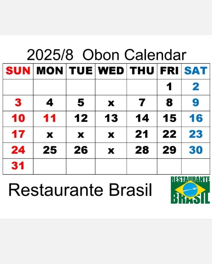 お盆休み営業日 投稿者:rest brasil2025年8月2日カテゴリー:お知らせタグ:お盆、休み 共有: Facebook で共有 (新しいウィンドウで開きます) Facebook Pinterest で共有 (新しいウィンドウで開きます) Pinterest Threads で共有 (新しいウィンドウで開きます) Threads WhatsApp で共有 (新しいウィンドウで開きます) WhatsApp X で共有 (新しいウィンドウで開きます) X いいね:いいね 読み込み中… 関連